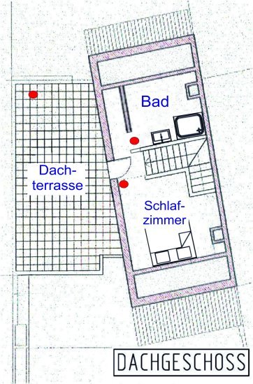 Das Haus besteht im Untergeschoss aus Diele, Küche, Badezimmer, Schlafzimmer und Wohnzimmer, im Dachgeschoss aus Schlafzimmer und Badezimmer. Dazu kommt noch die Dachterrasse, die Ihnen die Möglichkeit zum ungestörten Sonnenbaden bietet.