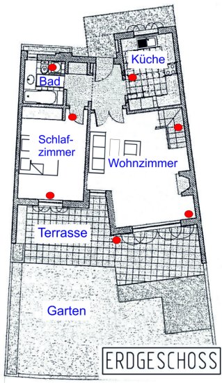 Von der Gartenterrasse können Sie die südländische Sonne fast den ganzen Tag genießen. Zum Entspannen und Sonnenbaden stehen Gartenmöbel in ausreichender Anzahl zur Verfügung. Sollten Sie einmal Verlangen nach einem schattigem Plätzchen haben, so können Sie die Markise auf der Gartenterrasse ausfahren.